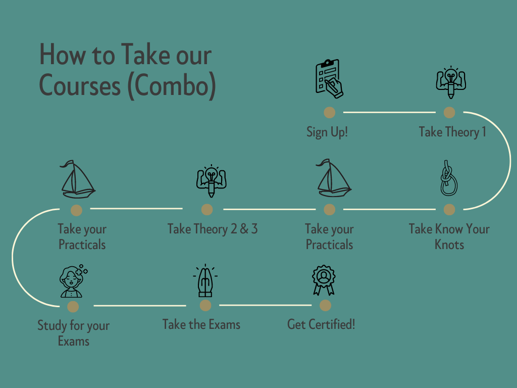 This course is designed for the sailor who wishes to be able to Bareboat Charter (charter a boat without a professional skipper). The sailor needs to have previous experience to start with this course (needs to know how to "Head Up", "Bear Away", "Tack" & "Gybe").